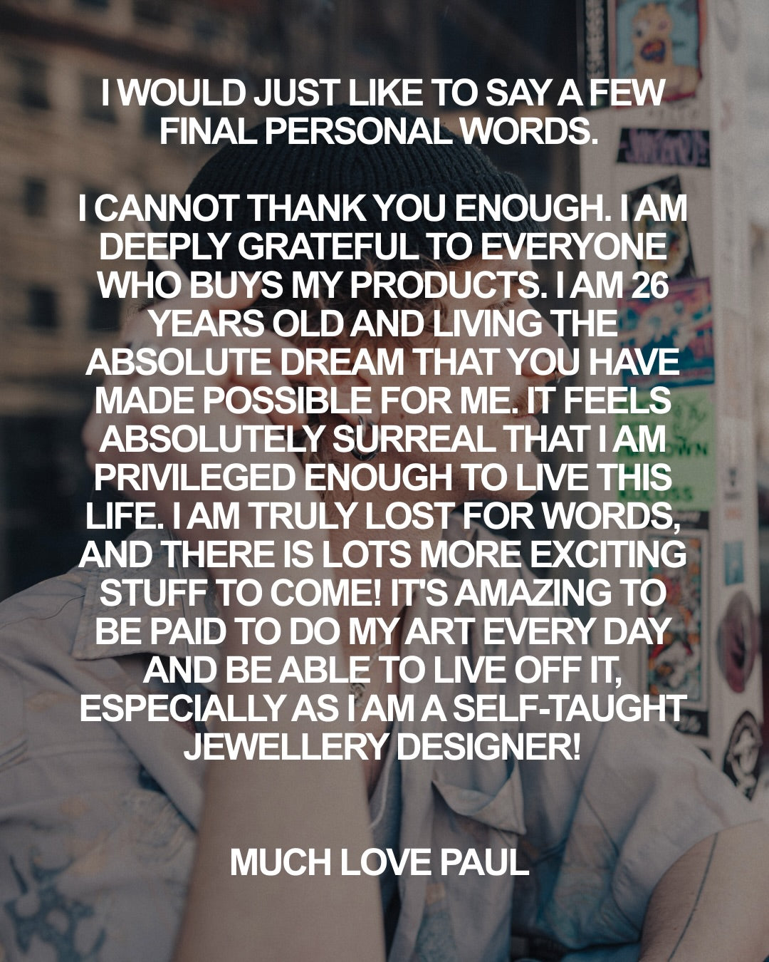 Hallo, ich bin Paul, 25 Jahre alt und das Gesicht hinter dem Schmucklabel „GIESBER“. Vor mittlerweile sechs Jahren habe ich meine große Leidenschaft für Schmuck entdeckt und damals ganz bodenständig mit der Herstellung von Ringen aus Edelstahlmuttern begonnen.