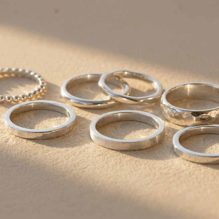Silber, Gelbgold, Roségold, Weißgold, auch vergoldet. Weißgold ist haltbarer als Silber, aber aktuell deutlich teurer geworden.