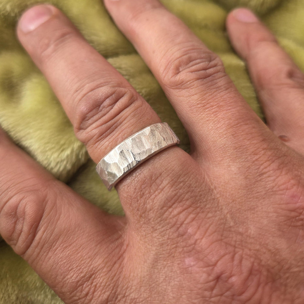 Jeder Ring wird einzeln von Hand gegossen. Die Oberfläche zeigt Spuren des Sandgusses – keine Maschine kann das reproduzieren. Du trägst kein Produkt, du trägst ein Original.